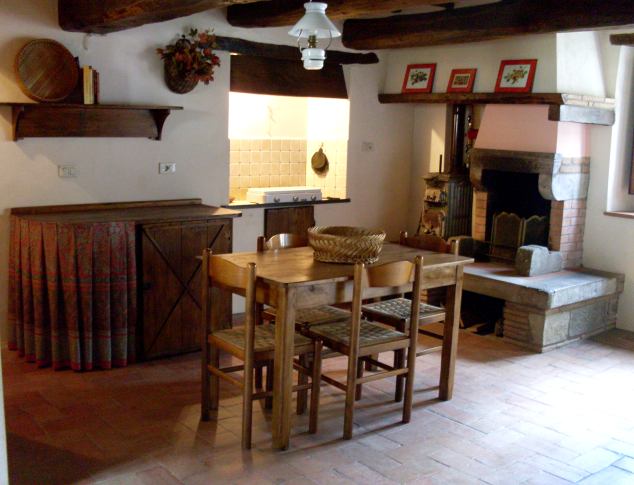 Ricavato dalla ristrutturazione di un vecchio fienile dei primi del '900, l’appartamento è composto da un ampio salone con angolo cottura e caminetto al piano terra |